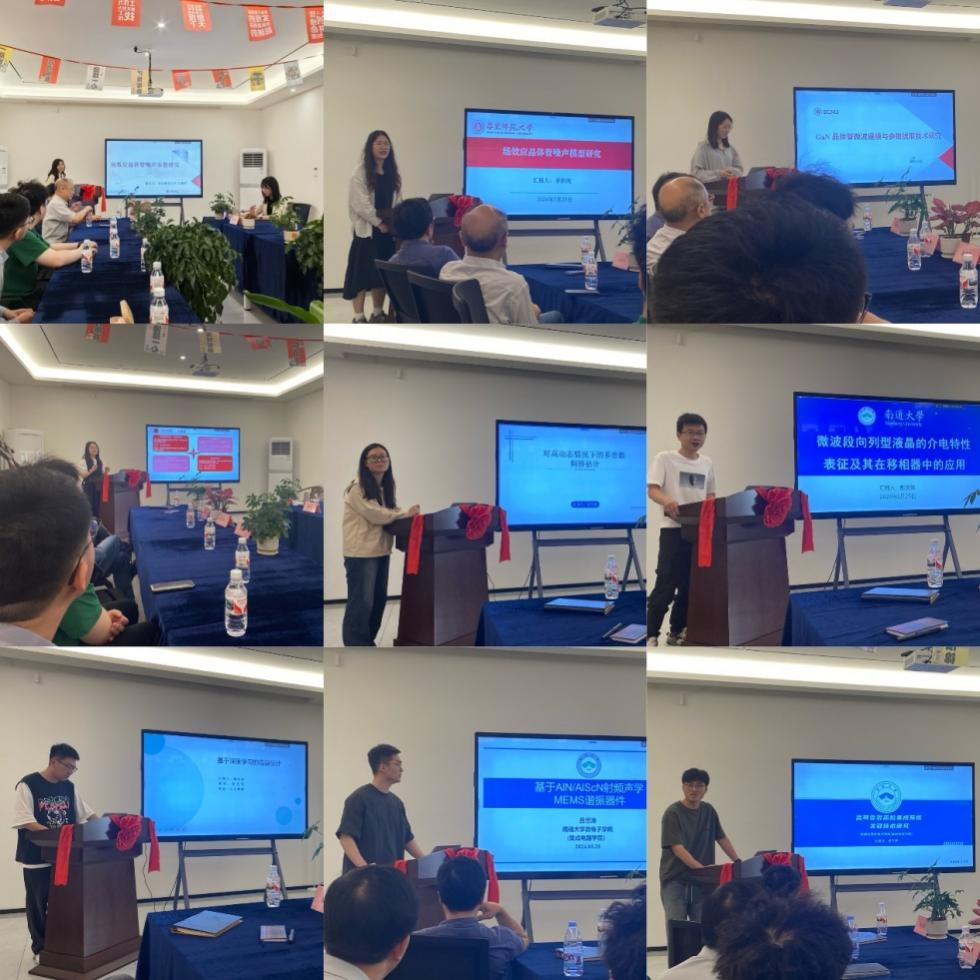 开幕式后,17吃瓜 17吃瓜 、交通与土木工程学院以及华东师范大学物理与电子科学学院研究生围绕“微波射频器件与电路仿真研究”为主题开展了相关学术报告。学术交流环节上,研究生们的学术报告精彩纷呈。华东师范大学的研究生主要介绍了噪声模型和大信号模型的建模流程、参数提取方法,并介绍了宽阻带滤波器的创新结构。17吃瓜 的研究生依次进行了有关高动态多普勒频移、微波段向列型液晶及移相器、基于深度学习的信道估计、射频声学MEMS谐振器件、多芯粒集成系统技术和单晶薄膜谐振器件等主题的研究报告。
