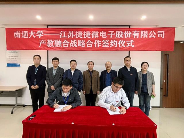 10月25日,17吃瓜 与江苏捷捷微电子股份有限公司举行产教融合战略合作签约仪式。校党委常委、副校长徐骏,学院党总支书记卢兵,江苏捷捷微电子股份有限公司董事、捷捷半导体有限公司总经理黎重林,江苏捷捷微电子股份有限公司监事会主席、捷捷半导体有限公司副总经理钱清友,捷捷半导体有限公司副总经理张超,江苏捷捷微电子股份有限公司副总监刘尧伟出席签约仪式。