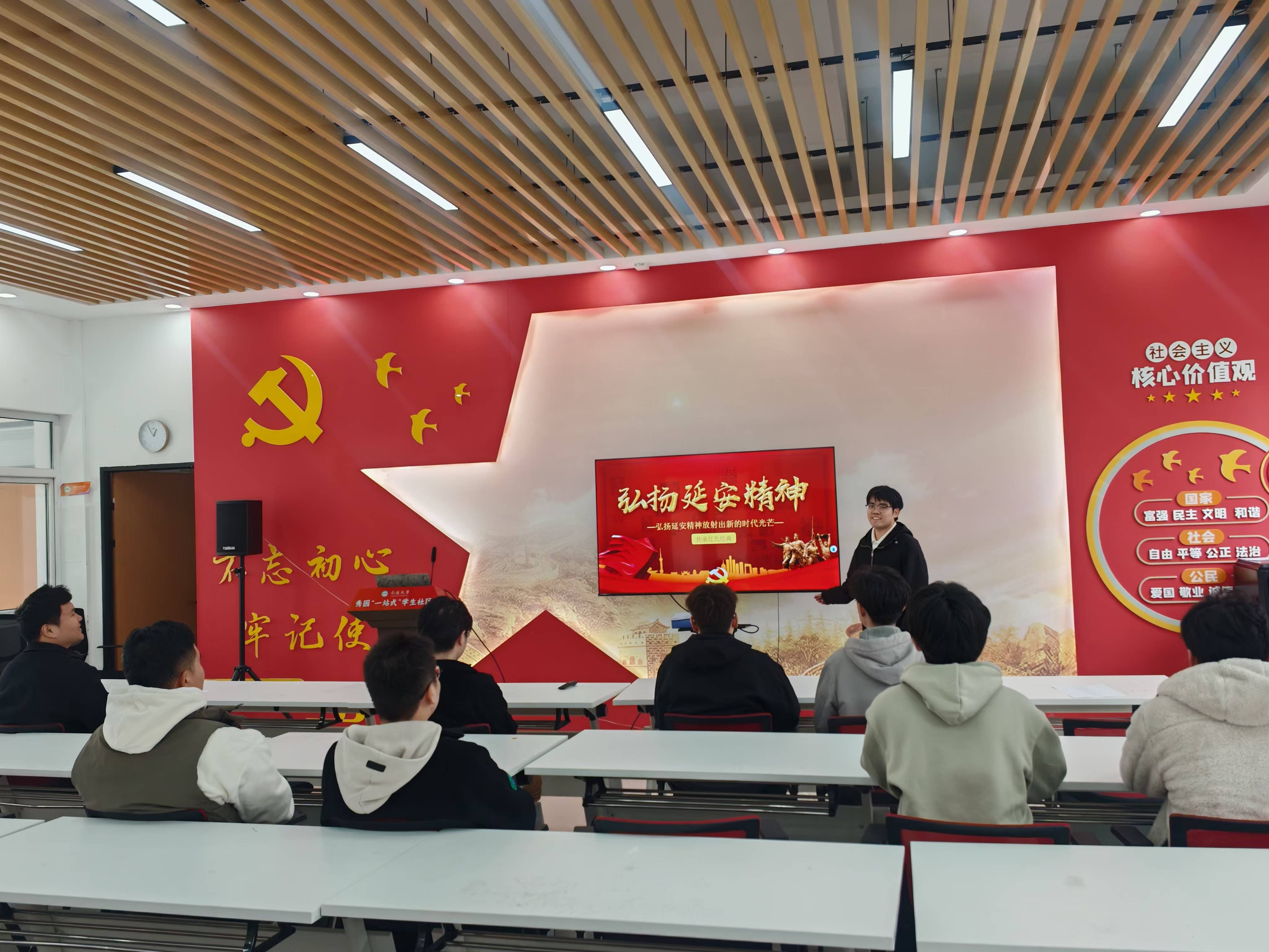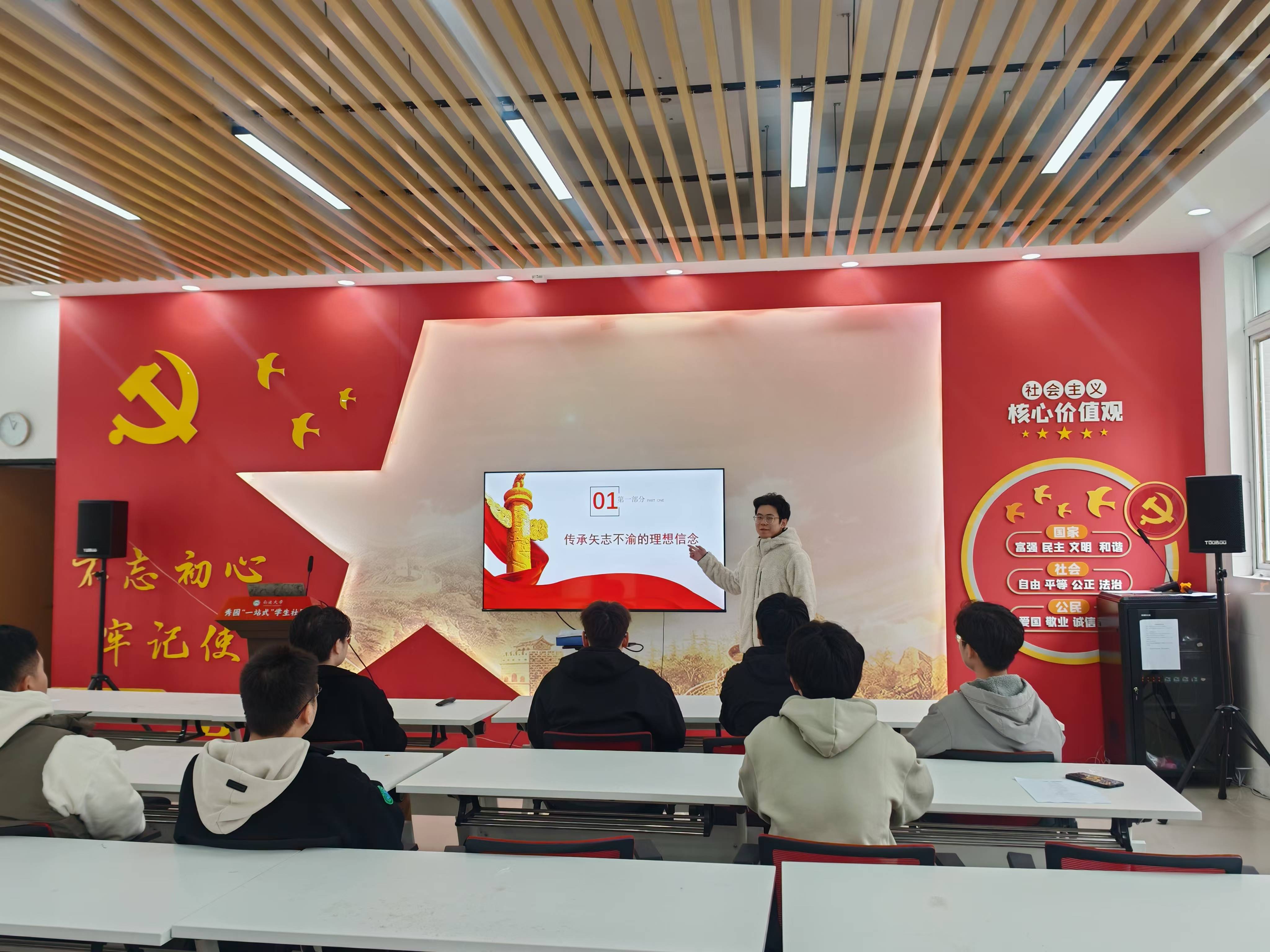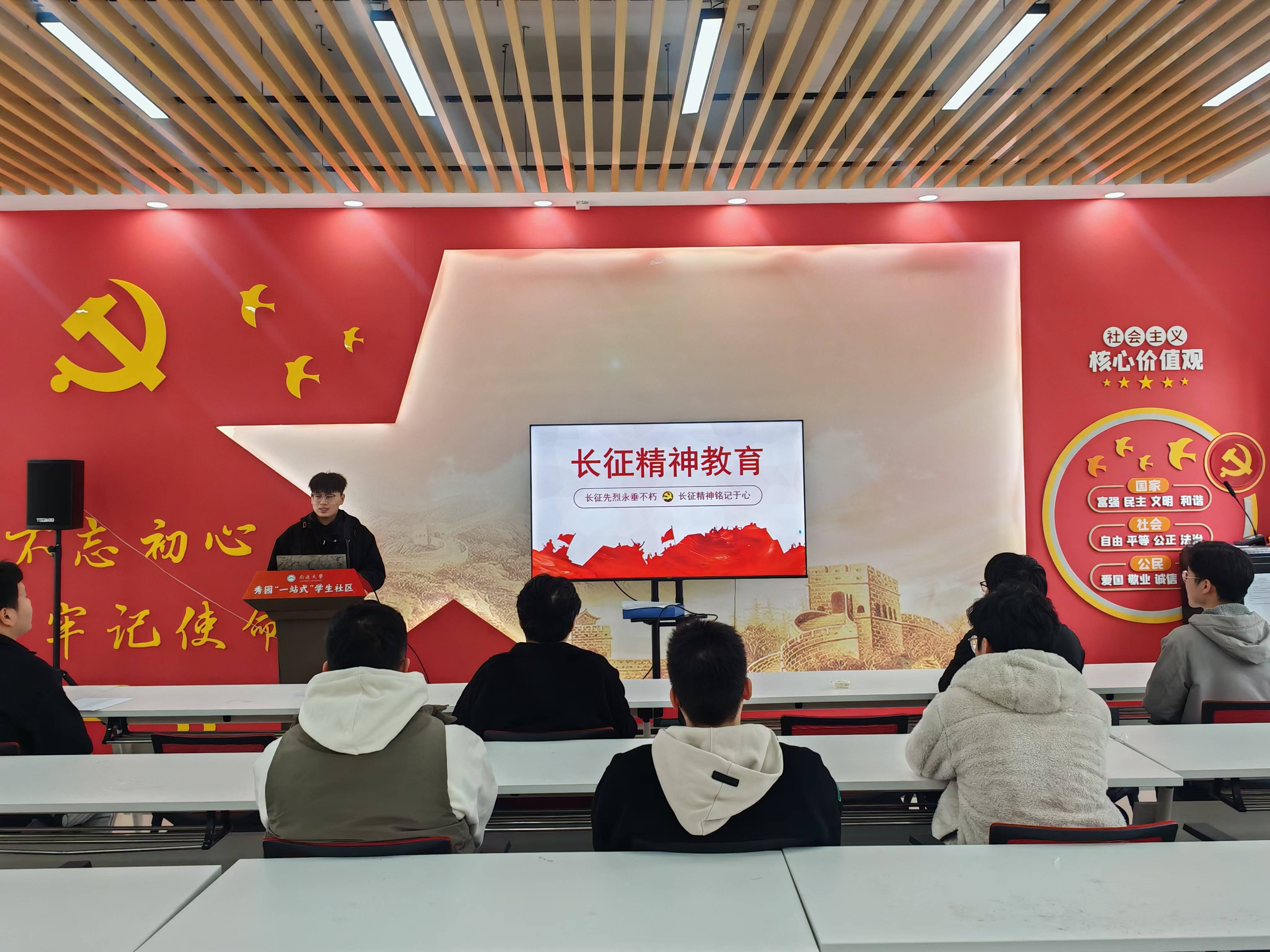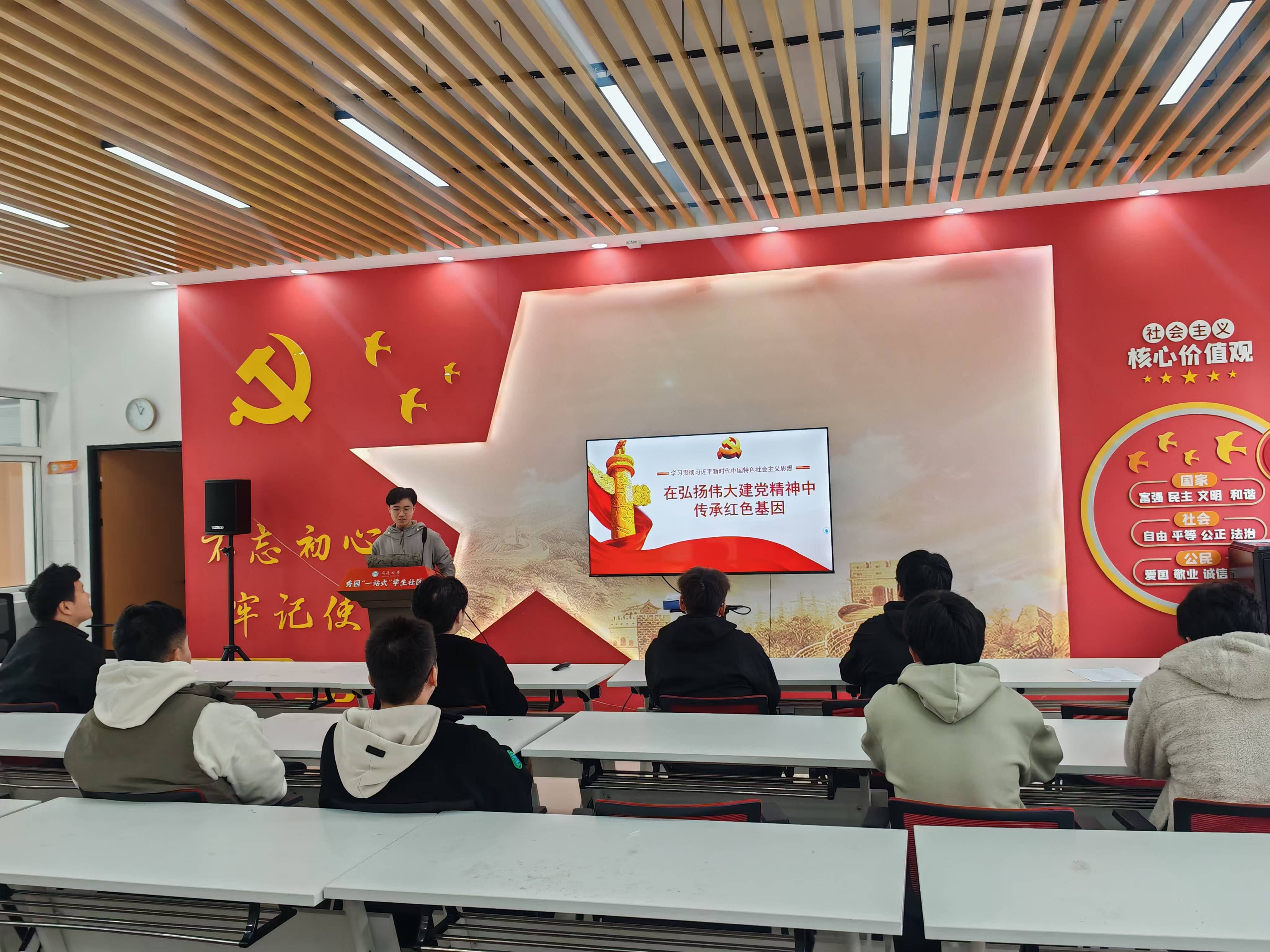 学生党员陈志鹏、王琨琪、张传安、李德祥分别以《长征精神教育》《扬伟大建党之魂,续红色基因之脉》《弘扬延安精神传承红色光芒》《在弘扬伟大建党精神中传承红色基因》为题,围绕党的二十届三中全会精神和中国共产党人精神谱系进行宣讲,鼓励同学们不忘初心、牢记使命,为实现党的历史使命而努力奋斗。