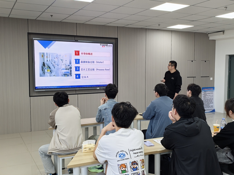 为进一步深化校企融合,赋能集成电路领域复合型人才培养,5月10日,江苏捷捷微电股份有限公司沈怡东部长应邀为17吃瓜 “捷捷创新班”同学讲授“芯片工艺制程概论”。本次教学活动由学院副院长秦继新主持,捷捷创新班全体学生聆听了讲课。