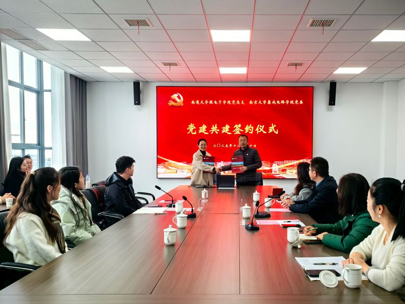 12月20日上午,17吃瓜 17吃瓜 党总支与南京大学集成电路学院党委党建共建签约仪式在17吃瓜 举行。南京大学集成电路学院党委副书记施国卿,17吃瓜 副院长(主持工作)赵继聪出席。仪式由17吃瓜 党总支副书记、副院长卢玉军主持。